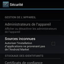Afin d’installer n'importe qu'elle application sur votre Mobile Android , il vous suffit d'aller à: Menu > Paramètre > Sécurité puis cochez la case (Sources inconnues).